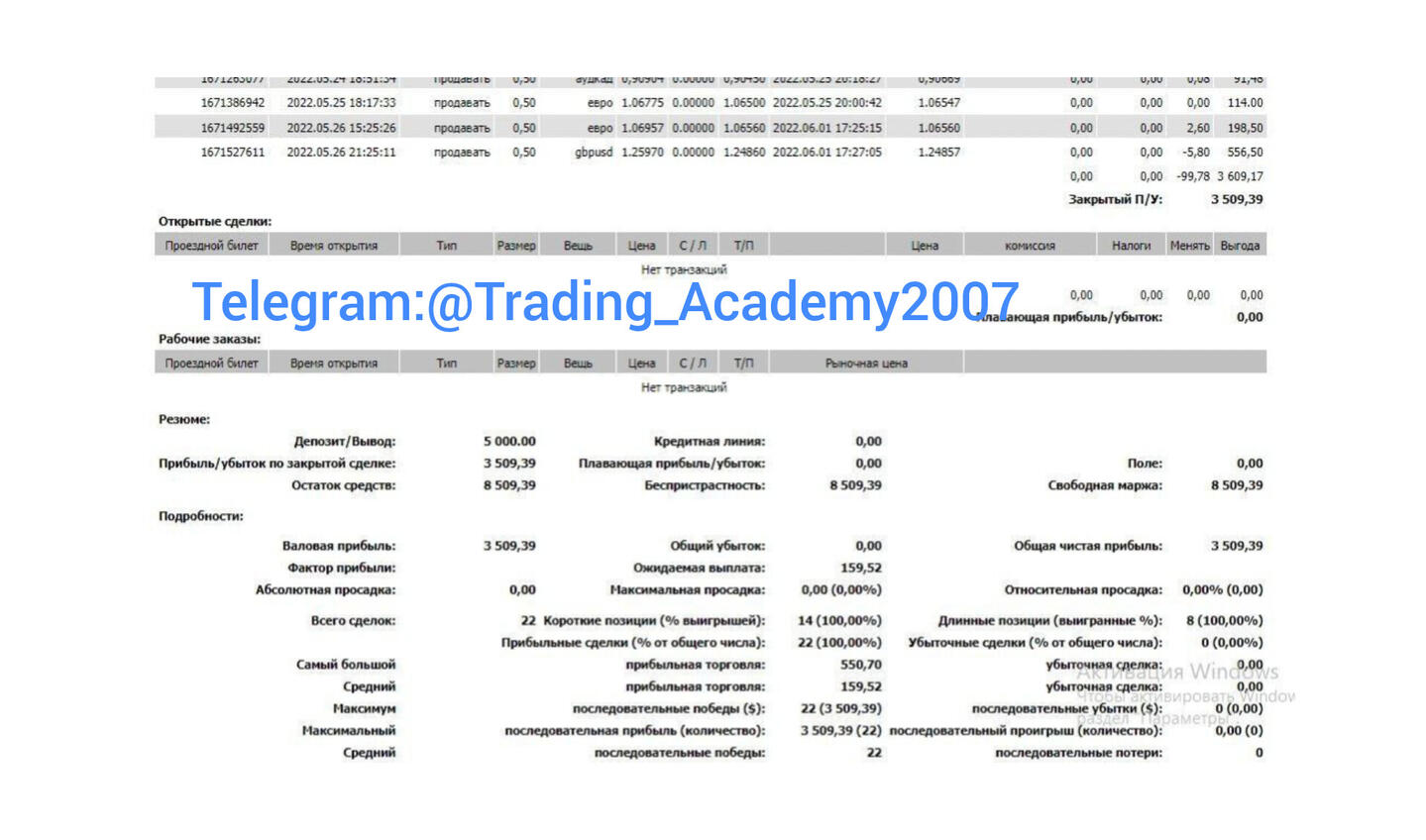 ---P.S. За 22 месяца торговли была только одна убыточная сделка на сумму 122€. Я делаю акцент на том, что учу торговать без убыточных сделок.